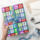 Este papel de embrulho personalizado apresenta um design de padrão quadrado encantador, personalizável com até nove letras ou números alfabéticos para destacar o monograma ou a idade de uma criança, acrescentando um toque único. Perfeito para os aniversários das crianças ou qualquer ocasião especial, as vibrantes e coloridas praças trazem uma vibrante e divertida vibração às suas comemorações. Imaginem a alegria e o entusiasmo como os vossos entes queridos a soltar presentes embrulhados num design tão atencioso e personalizado! Por que se conformar com o ordinário quando você pode fazer seus presentes se destacarem com este extraordinário papel de embrulho? Adicione alguma personalidade e cor às suas festividades, criando memórias duradouras com papel de embrulho inesquecível! © Wafa Y. Dahdal - Todos os direitos reservados. WD Art