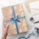 Holidays Modern Wrap decorado com textura de pó metálico com árvore de Natal dourada rosa falso.