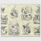 Clássico literário, Aventuras de Alice no País das Maravilhas por Lewis Carroll ilustradas por John Tenniel em tons castanhos beges sobre a sepia com roteiro manuscrito, para os amantes do livro, literatura de fantasia, era vitoriana. As cenas mostram Alice, Mad Hatter, White Rabbit, a festa do chá, o Griffon. Perfeito para projetos de embrulho de presente de aniversário e DIY.