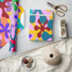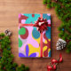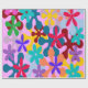 Este papel de embrulho tem um design retroativo dos anos 70 de flores sobrepostas em vermelho, azul, roxo, amarelo, laranja e vermelho. Colorida, brilhante e divertida.