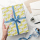 Papel de embrulho floral amarelo cinza branco.