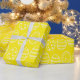 PAPEL DE PRESENTE AMARELO COM OVOS ORIENTADORES BRANCOS