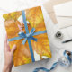 Papel De Presente Amarelo e folhas de bordo do ouro