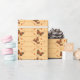 As borboletas de amor e borboletas apresentam um padrão giratório de borboletas cor de laranja e marrom, combinadas com corações sobre um fundo bege cremoso.