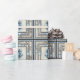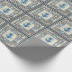 Um padrão náutico vintage de uma âncora de cinza de carvão ativado contra um fundo bege revestido com uma borda azul pálida e cinza. A âncora tem um salto de azul sobre ela e é moldada por um mapa quadrado antigo