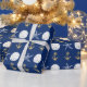 Papel de embrulho azul naval náutico com âncoras douradas, dólares de areia brancos e desenho de estrela-do-mar. Papel de presente de qualidade para celebrar seu aniversário ou ocasião especial.