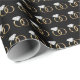 Este papel de embrulho apresenta uma ilustração de um par de anéis de casamento de diamante com uma banda de ouro dispostas em um padrão fofo em papel preto. Perfeito para embrulhar noivado ou presentes de casamento!