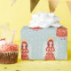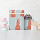 Um anjo moderno com um vestido vermelho num fundo azul de ovo de pato. Arte original de Nic Squirrell.