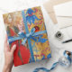 Anunciando Detalhe de Anjo de Perugia Triptych Itália, obra-prima medieval italiana tardia de Fra Beato Angelico .Elegante, design de Natal clássico, brilhante e alegre em pergaminho com antigas motins florais florentinas e um gemstones rubis vermelho brilhante em 3D.