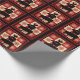 Este papel de embrulho de inverno na fazenda do país apresenta uma pilha de bichos-da-silhueta colocados contra um fundo de flocos de neve vermelho e branco, de estilo vintage. -