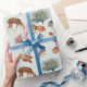 Papel De Presente Animais de Floresta e Aves Cinzas Fundo Verde