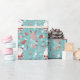 Papai Noel bonito e papel de embrulho de renas personalizados com um nome ou qualquer texto personalizado. Folha de presente de excelente para Natal ou Feriados, com animais bonitos e ilustrações de inverno em laranja ou vermelho mole e verde-aqua.