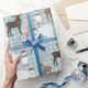 Apresenta um padrão geral de ilustrações pintadas de animais árcticos vestindo chapéus de inverno de malha com ilustrações de ursos polares, renas, alce, pufinas e raposas do Ártico.