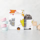 Embalagem de presente adorável para um chá de fraldas ou aniversário. Raposa, guaxinim, esquilo, veado adoram este belo plástico de madeira.