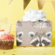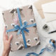 Gift-wrap with a cute Racoon and pink confetti. Pretty bow with shades of blue and rosy light brown.