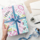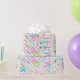 Brincar da idade de alguém é uma tradição e este papel de embrulho de cinquenta anos não é exceção com uma palavra engraçada cheio de nuvens de sinônimos para 'velho', incluindo: sem frango primavera, cortiça, dinossauro, sobre a colina e muito mais. Escolha qualquer cor de fundo que você queira acompanhar os textos rosa, turquesa, verde e preto. Procure ID266 para ver outras idades e produtos adicionais com este design.