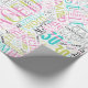 Brincar da idade de alguém é uma tradição e este papel de embrulho de trinta anos não é exceção com uma palavra engraçada, cheio de nuvens de sinônimos para 'velho', incluindo: sem frango de primavera, cortiça, dinossauro, sobre a colina e muito mais. Escolha qualquer cor de fundo que você queira acompanhar os textos rosa, turquesa, verde e preto. Procure ID266 para ver outras idades e produtos adicionais com este design.
