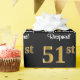 Este design de papel empacotado sofisticado, elegante e com temas de na moda de aniversário apresenta um grande número ordinal "51ruas" com aparência falsa/imitação de ouro, mais a mensagem de saudação de aniversário "Happy 51rua Birthday" e um nome de destinatário personalizado em uma fonte estilo script. O fundo é preto colorido. O papel de embrulho temático de aniversário como este pode ser usado para dar um presente ou presente em comemoração dos cinquenta anos de alguém. [~Z0000515]