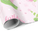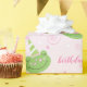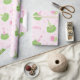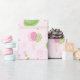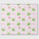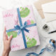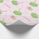 Papel de embrulho bonito com um sapo verde-doce que veste chapéus de festa com cor rosa e verde macia. O padrão tem a palavra "Aniversário" nela, mas não menciona o ano, então isso é perfeito para QUALQUER aniversário.