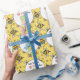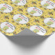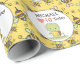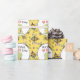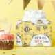 Tartaruga de desenho animado fofo segurando um balão em forma de coração rosa. Ele tem cabeça e pernas verdes, corpo amarelo, casco marrom e rosto adorável. Ao lado dele há uma pequena flor amarela feliz. A borda é amarela com um padrão de abelhas. Modelos para adicionar o nome e a idade de aniversário.