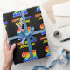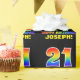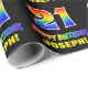 Esse design de papel empacotado alegre, divertido e colorido com tema de aniversário apresenta um grande número "21" e a mensagem "FELIZ ANIVERSÁRIO", ambos tendo um gradiente de padrão inspirado no espectro do arco-íris, juntamente com um nome ousado de destinatário personalizado amarelo. O fundo é preto colorido. Um papel de embrulho divertido como este pode ser usado ao embrulhar um presente de aniversário ou presente dado a alguém que comemora seu vigésimo primeiro aniversário. [~Z0000475]