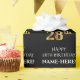 Este design elegante e luxuoso de papel de embrulho temático de aniversário apresenta a mensagem "FELIZ ANIVERSÁRIO DE 28 ANOS,", um nome personalizado, e o número do aniversário "28º" tendo um padrão de aparência inspirado em ouro falso/imitação. O fundo é colorido de preto. Papel de embrulho como este pode ser usado ao embrulhar presentes a serem dados em celebração do 28º aniversário de alguém. [~Z0000454]