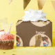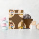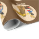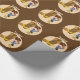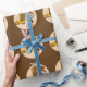 Festa de aniversário de cowboy personalizada e adorável embrulhando papel em castanho e bronzeado. Possui um camponês se inclinando contra uma bota gigante de cowboy. Personalize este presente com o nome do seu filho.