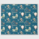 Este papel encantador de embrulho para o aniversário de uma criança é perfeito para um menino ou para uma menina. O fundo azul complementa um padrão de bolo rústico com balões de ar quente, uma raposa doce em uma bicicleta, árvores de aquarela e sotaques botânicos verdes e folhosos. Este presente neutro de gênero para crianças é perfeito para um aniversário, Páscoa, comunhão sagrado, confirmação ou outro evento especial.
