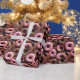 Rosquinha com o tema "Aniversário do Presente". Rosquinha de cor-de-rosa e chocolate com quebra-cabeça de borrifadas.