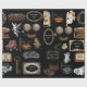 Adicione um toque pessoal ao seu presente. Vintage e artigos nostálgicos do passado decoram este presente. Quadros de ornamentado e vintage para personalização de nome.