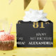 Este elegante e luxuoso design de papel de embrulho com tema de aniversário apresenta a mensagem "FELIZ 81ruas ANIVERSÁRIO", um nome personalizado, e o número de aniversário "81ruas", com um padrão de aparência falsa/imitação de ouro inspirado. O fundo é preto colorido. Um papel de enrolar como este pode ser usado no empacotamento de presentes ou presentes a ser dado em comemoração do aniversário de 810 ruas de alguém. [~Z0000454]