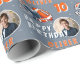 Foto do Cartoon de Capacetes de Futebol Foto de Aniversário. Brincadeira de presente de aniversário de futebol divertida e moderna. Apresentando uma ilustração ousada de um futebol e capacete em laranja e azul. Adicione sua foto, nome e idade.