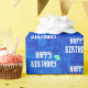 O abstrato preto pintou o espaço externo em azul-neon com texto de aniversário feliz.