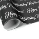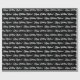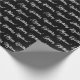 Nome da caligrafia de script personalizado elegante, texto, monograma, padrão, papel de empacotamento de presentes de aniversário. Texto branco totalmente personalizável, fundo preto. Escreva seu próprio texto