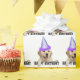 Recuperador de ouro bonito com chapéu de festa de aniversário em fundo branco. A cor de fundo pode ser editada.
