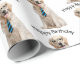 Ouro recuperador com óculos pretos e gravata riscada em fundo branco para aniversário. A cor de fundo pode ser alterada.