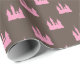 Complemente seus presentes de chá de fraldas com um pouco de princesa. Este papel de embrulho é elegante e doce. Um padrão de castelos cor-de-rosa é sobre uma cor castanha, fazer-os pop. Ilustrada e projetada por Patricia Alvarez.