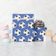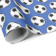 Moderno, futebol, azul, futebol, crianças, esportes, preto e branco, papel de embrulho de padrão. Excelente de aniversário.
