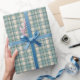 Papel De Presente Aniversário dos Homens da Xadrez Verde Azul
