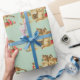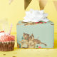 Uma ilustração elegante de três gatos bonitos celebrando uma ocasião especial cantando e tocando música com um buquê de rosas deitados ao lado.