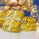 Papel de papel de embrulho temático da arte da palavra do aniversário do ouro 50th. Ideia do presente da celebração do aniversário de casamento dourado.