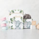 Este papel de embrulho simples, mas elegante apresenta um adorável elefante para bebês e um verde-aquarela moderno em verde macio e ouro.
