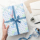 Crie o papel de embrulho personalizado perfeito para um aniversário especial ou chá de fraldas com este design de elefante azul giro. Um adorável elefante azul atravessa uma área design em forma de diamante em um fundo de bolinhas azuis em branco. Adicione um monograma inicial à pequena bola verde-menta balanceada no porta-malas do elefante para corresponder ao nome da futura mãe (ou criança para um aniversário) em uma fonte azul mais escura. Este bonito tema animal embrulhando papel em azul e branco faz um sotaque único para o seu presente e trará um pouco de AWWW para a mesa de presentes no seu próximo chá de fraldas ou celebração de aniversário.
