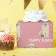 Feliz ouro de aniversário, recuperador, vestindo óculos de fundo cor-de-rosa. A cor de fundo pode ser alterada.