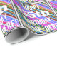 Este divertido design de papel de embrulho com tema de aniversário apresenta uma mensagem como "HAPPY 65th BIRTHDAY, NAME-HERE!", onde o nome pode ser personalizado. O plano de fundo apresenta um padrão de listras vibrantes e multicoloridas. O texto da mensagem é branco colorido e tem uma aparência em apuros. Papel embrulhado como este pode talvez ser usado para embrulhar presentes ou presentes que são dados a alguém que está celebrando seus sessenta e cinco anos de aniversário. [~Z0000272]