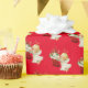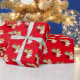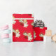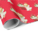 Papel de embrulho de presente de férias mostrado com um lindo impressão de anjo em um fundo vermelho.