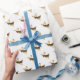 Papel De Presente Anjo tocando trompete Dourado Natal Branco
