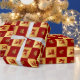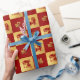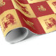 Festivo Vermelho e design de Folha de Ouro Ano Chinês do Papel de Embalagem de Presente Horso. Os personagens chineses na design são um sinal de Cavalo no símbolo chinês Zodiac e Good Luck Chinese. Cartões e presentes disponíveis no Ano Novo Chinês / Ano do Cavalo Categoria da nossa loja.