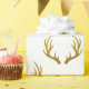 O papel de envolvimento rústico caracterizando os cervos do impressão do brilho do ouro do falso os antlers modela. O fundo é branco.