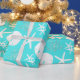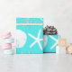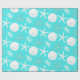 Um belo papel de embrulho de Natal costeiro apresenta um padrão de estrelas-do-mar, dólares de areia, e coral reluzente em um esquema de aqua e cor branca. *Se você quiser que este design em mais produtos ou precisar de ajuda para o design, entre em contato comigo através do Zazzle Chat.